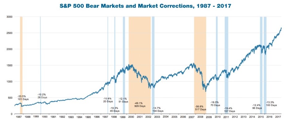 Exiting the market at these times generally isn’t a good idea. The stock market usually makes up market correction losses in about three months. If you sell during the correction, you will probably not buy in time to make up your losses.